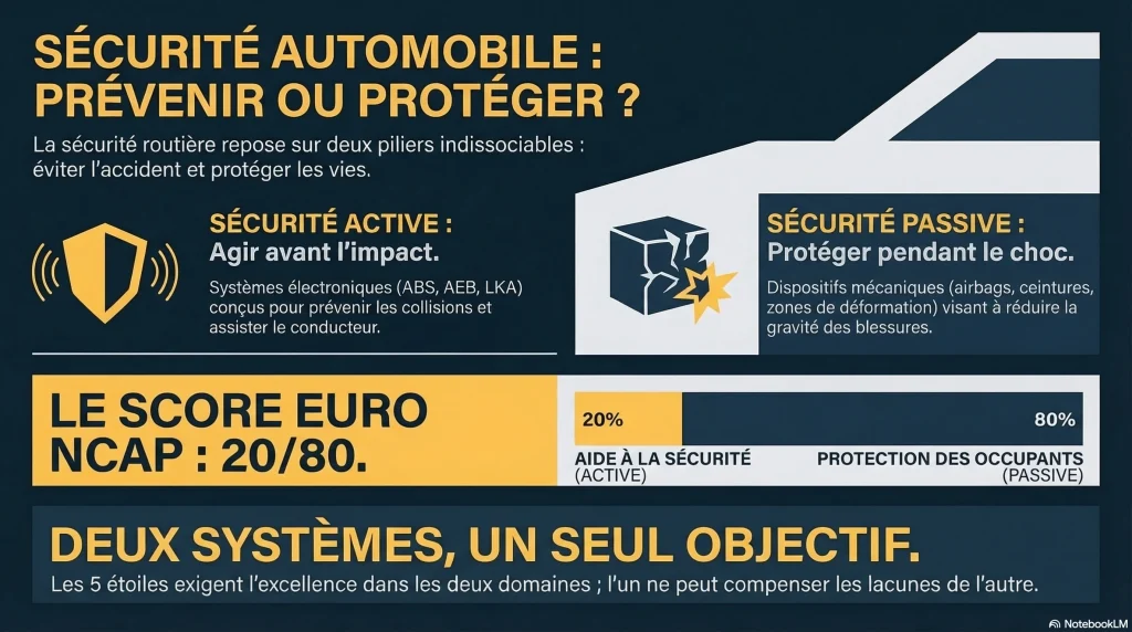 En pratique, la sécurité automobile moderne repose sur l’intégration de ces deux approches : éviter l’accident lorsque c’est possible, protéger efficacement lorsqu’il devient inévitable. L’Euro NCAP le matérialise dans sa notation : sa note globale n’a de sens que parce qu’elle mesure les deux ensemble.